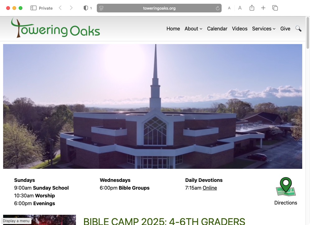 Towering Oaks Baptist Church, located in Greeneville, TN, wanted a website that would always look fresh and bring anyone seeking a church with the resources they needed to make that first visit as smooth as possible.